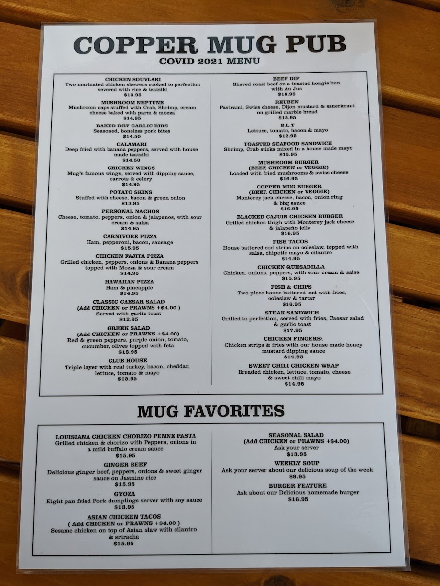 Welcome to Copper Mug Pub, a local gem nestled in Penticton. This inviting space offers a delightful blend of classic pub fare and innovative dishes, ensuring there's something for everyone. Guests have raved about the Cooper Mug Burger, touted as the best in town, featuring a hefty portion of fresh beef with all the classic toppings that will leave you satisfied. The pesto penne is another standout, bursting with flavors from bacon, chicken, onion, and spinach—an unexpected surprise for a pub.